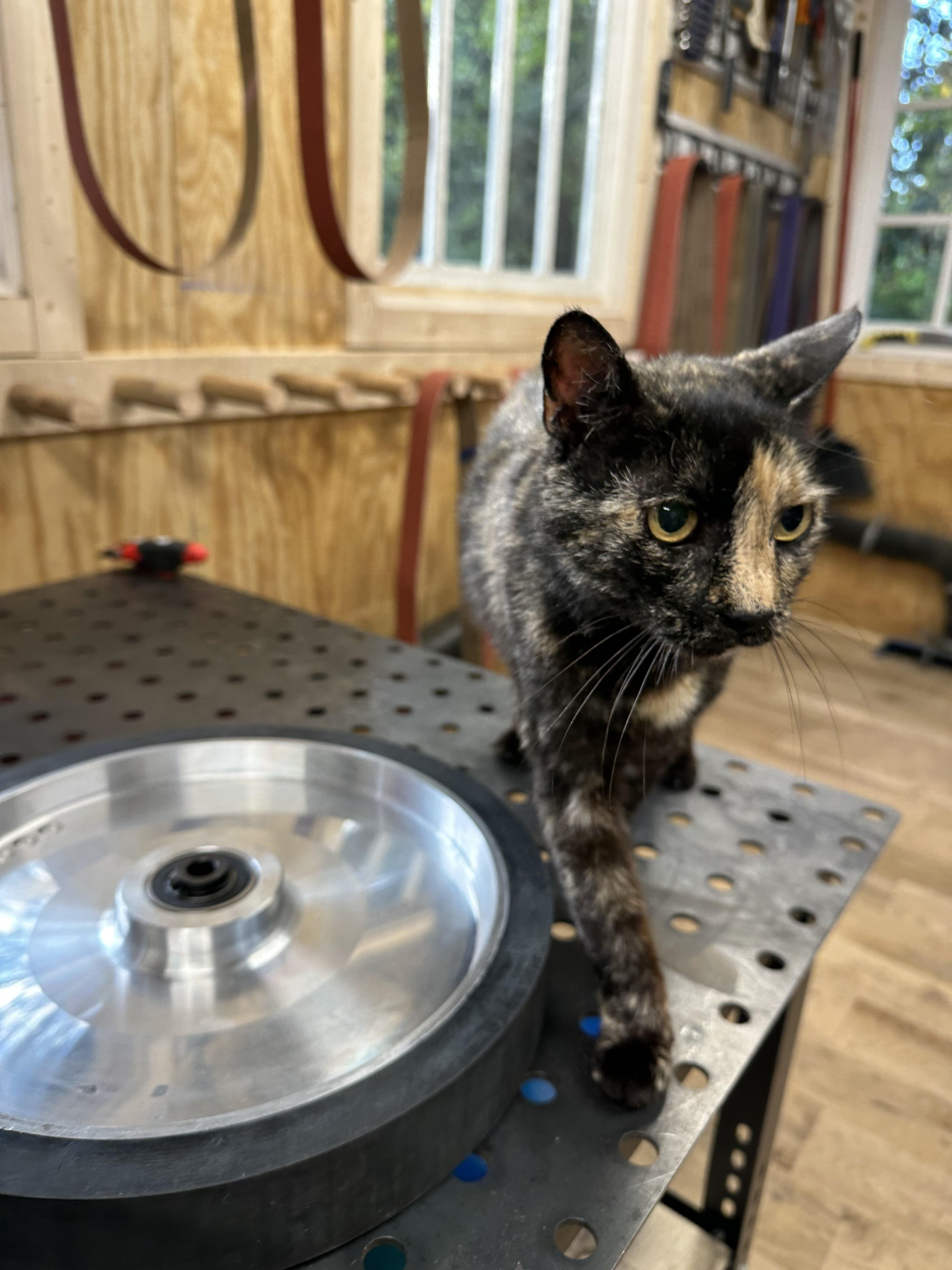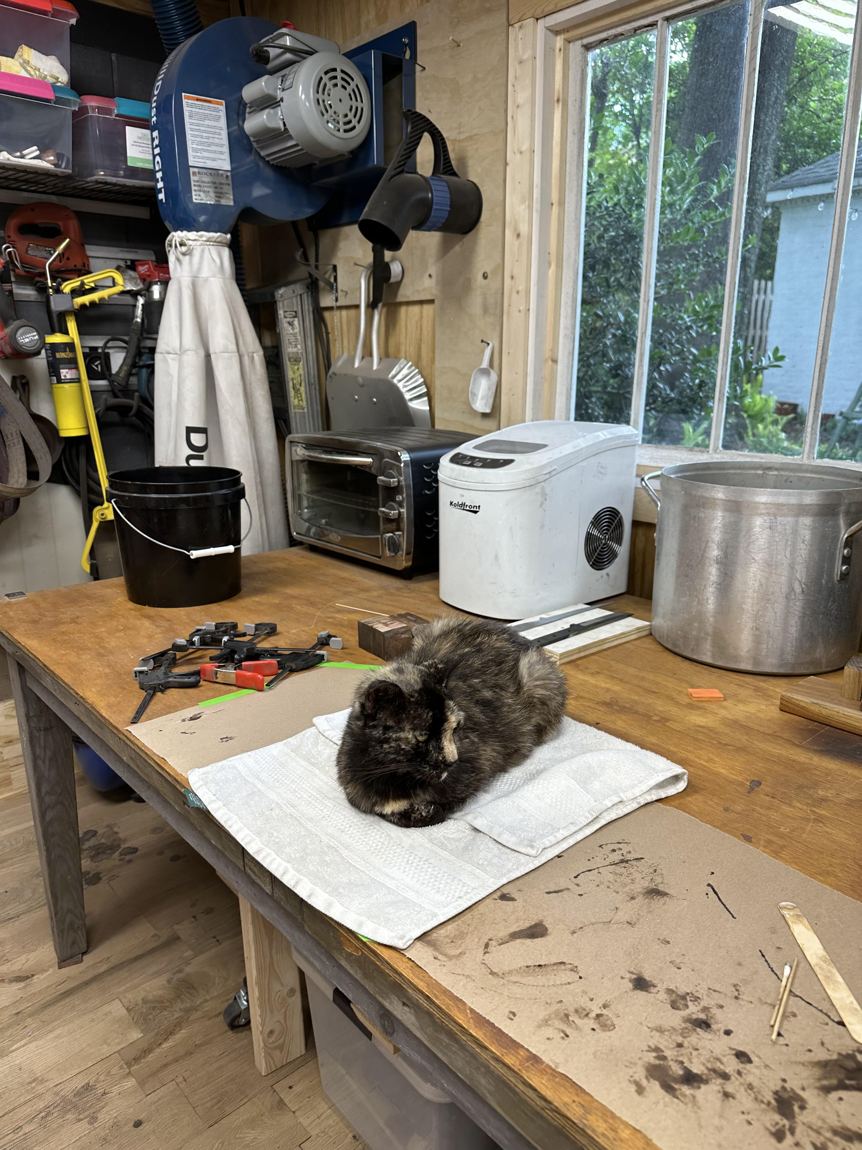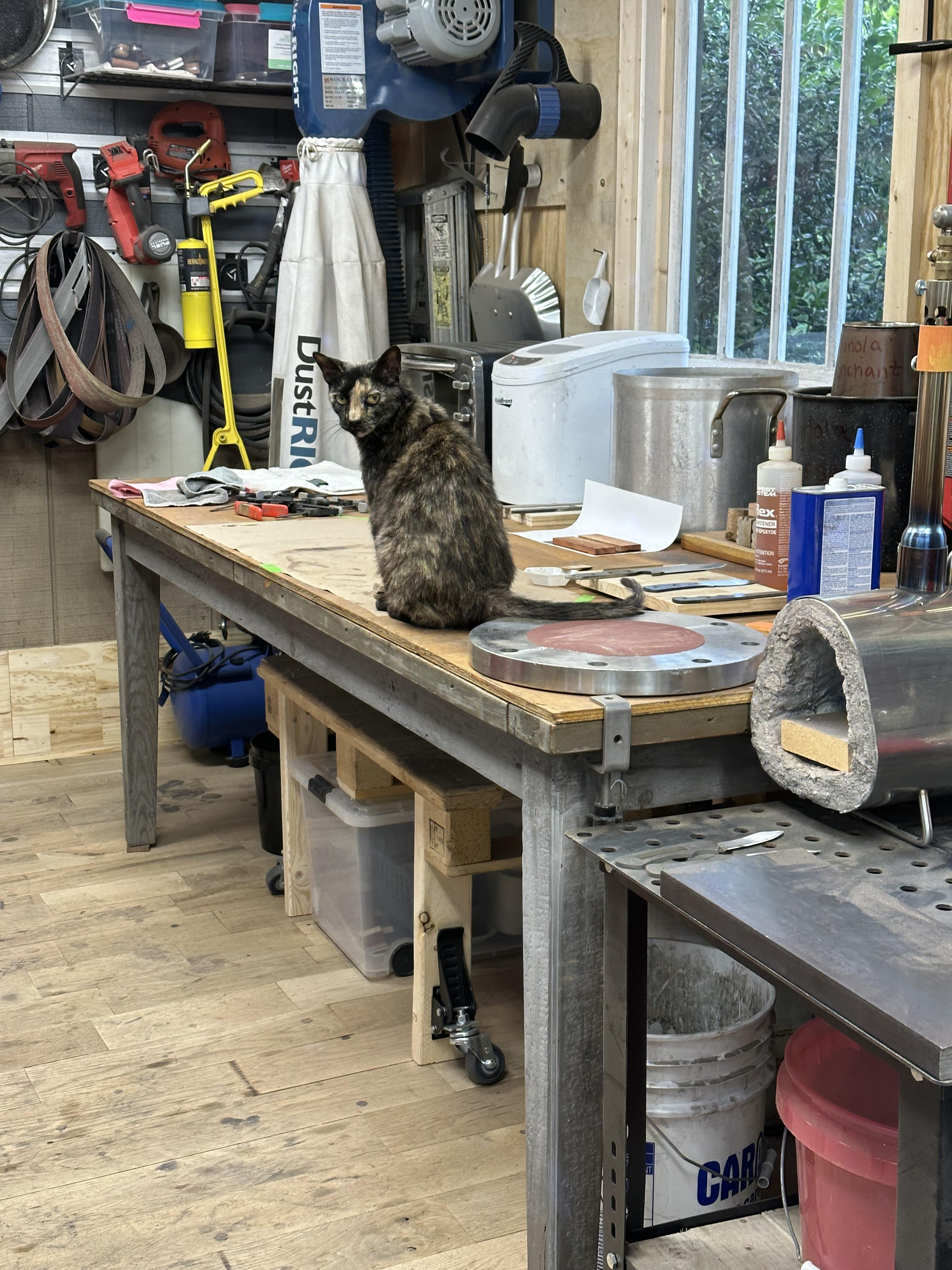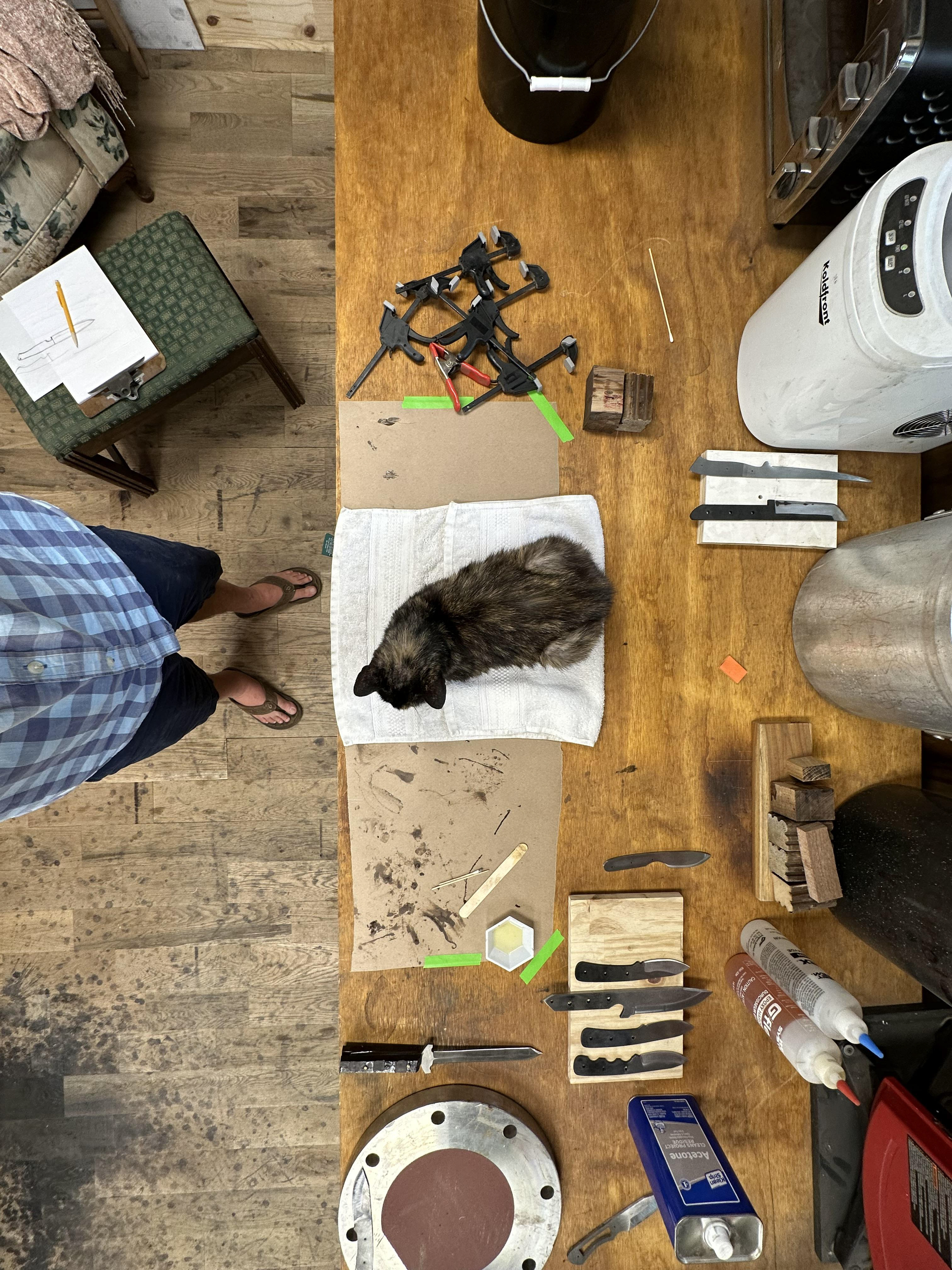 The shop cat that liked to help make knives.