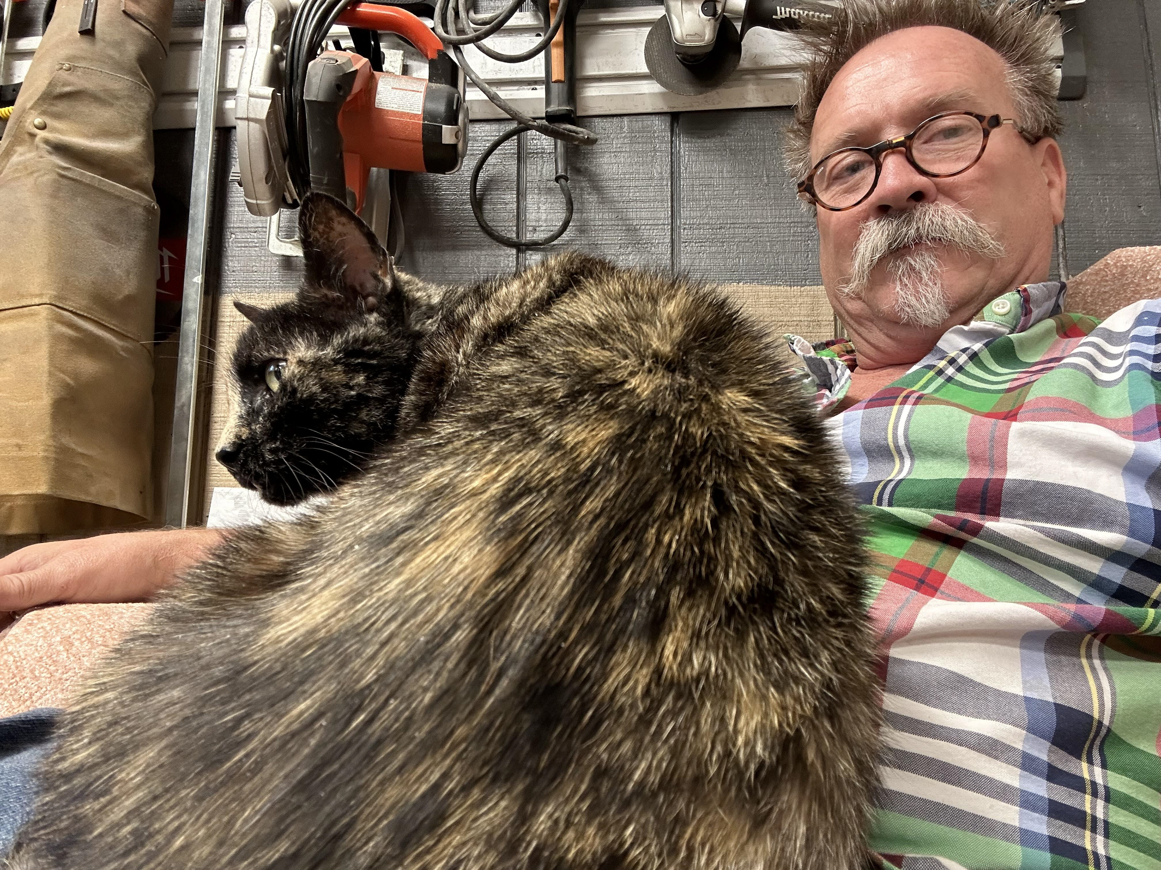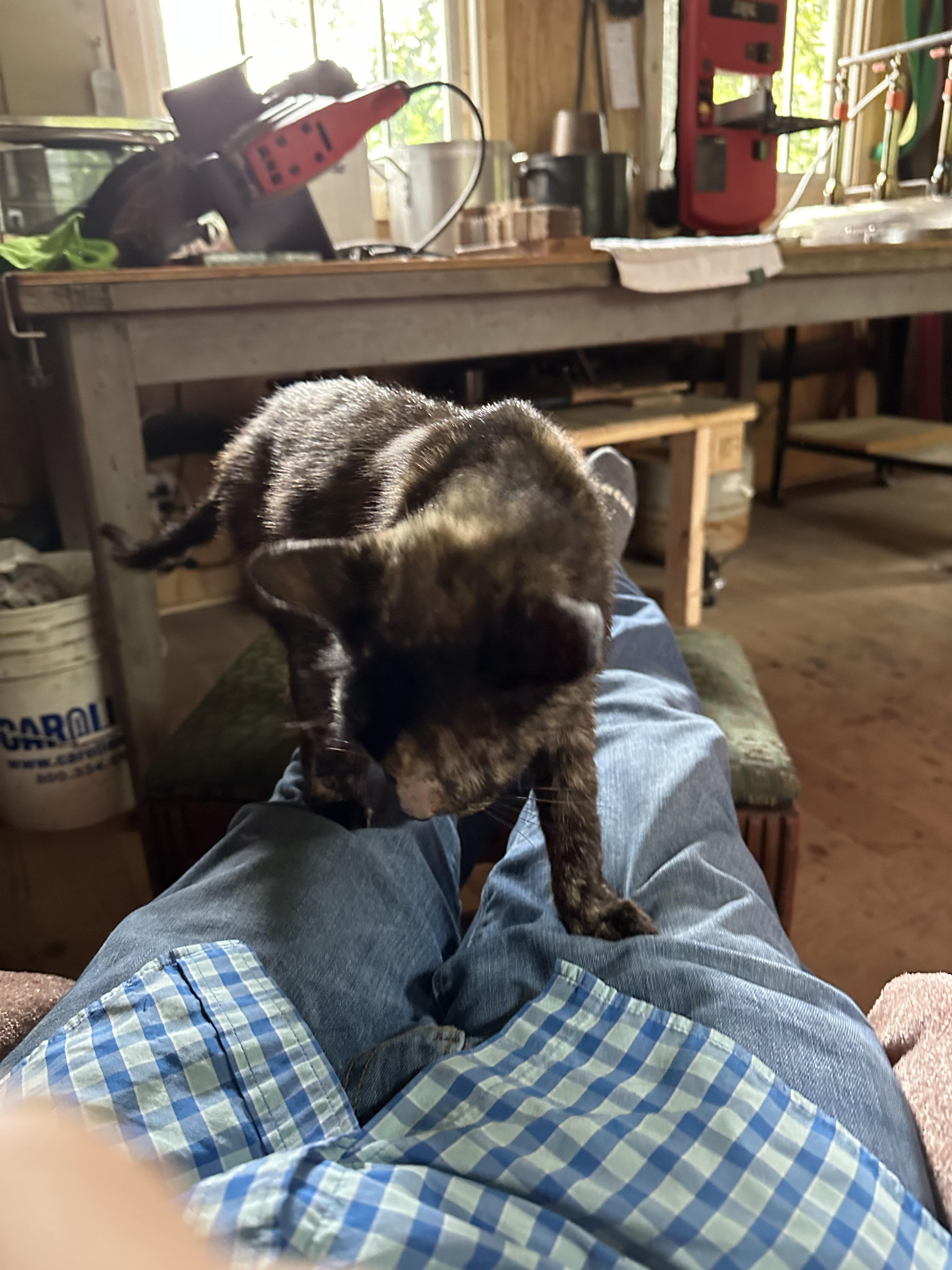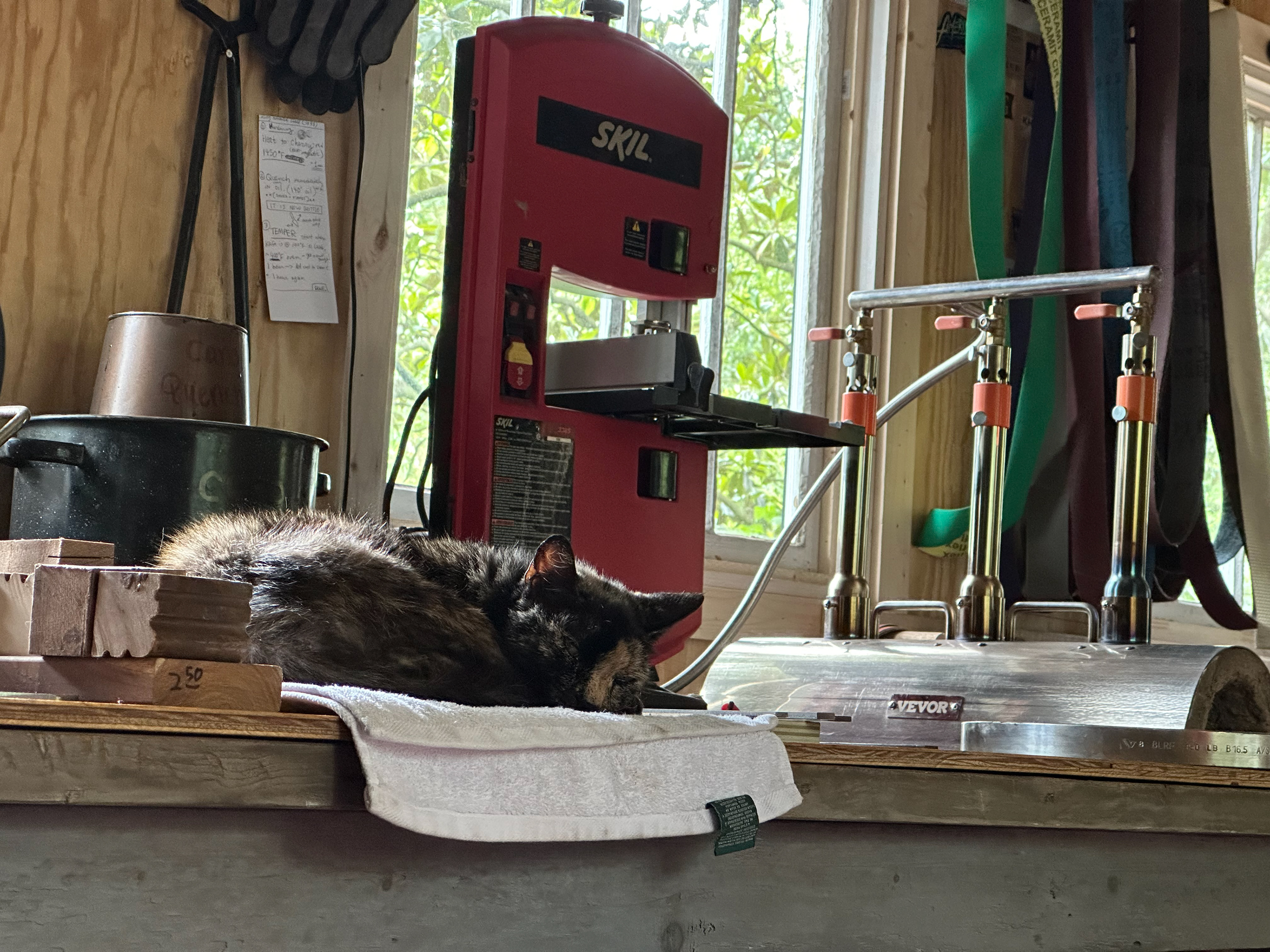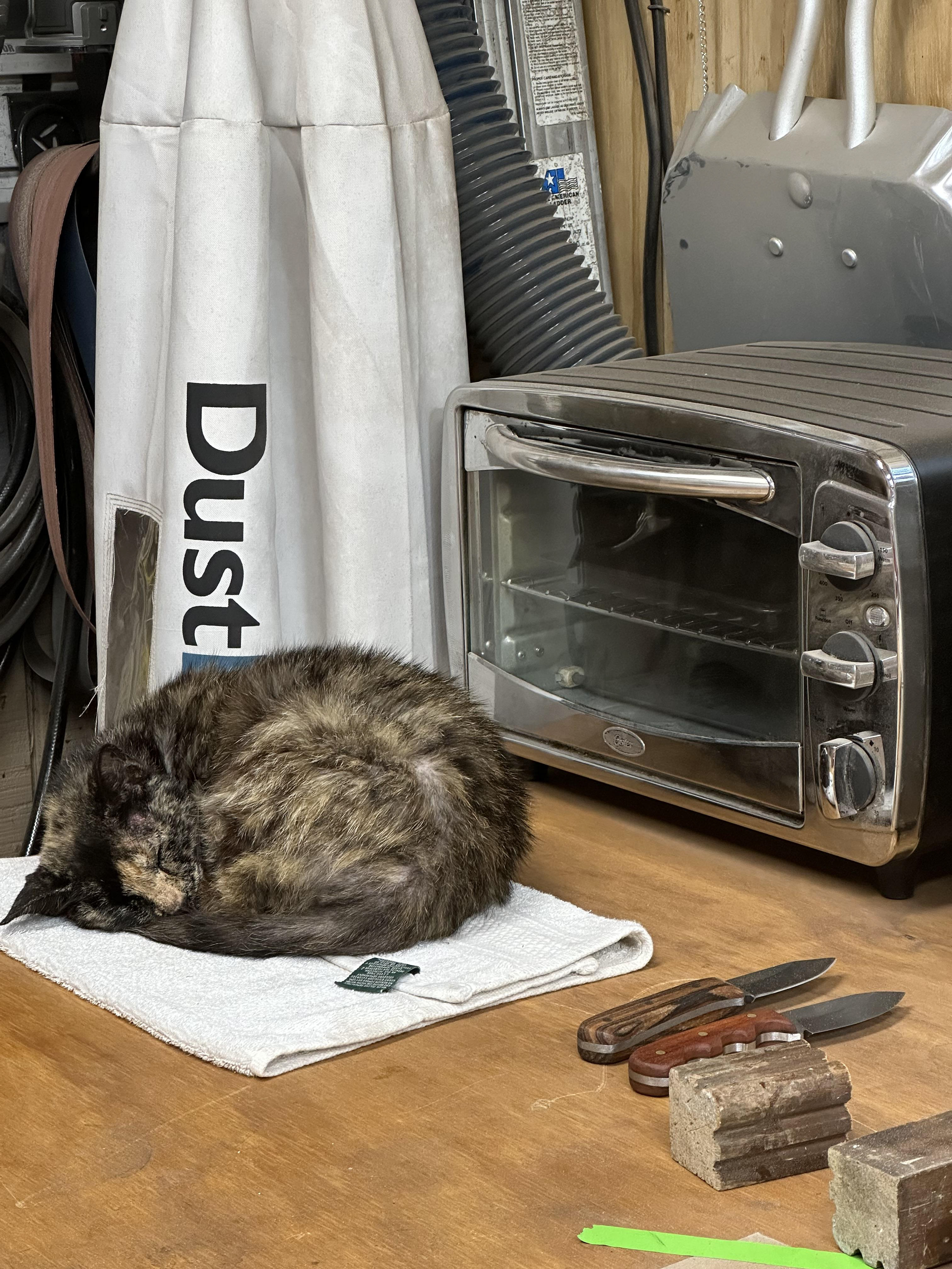 The shop cat that liked to help make knives.