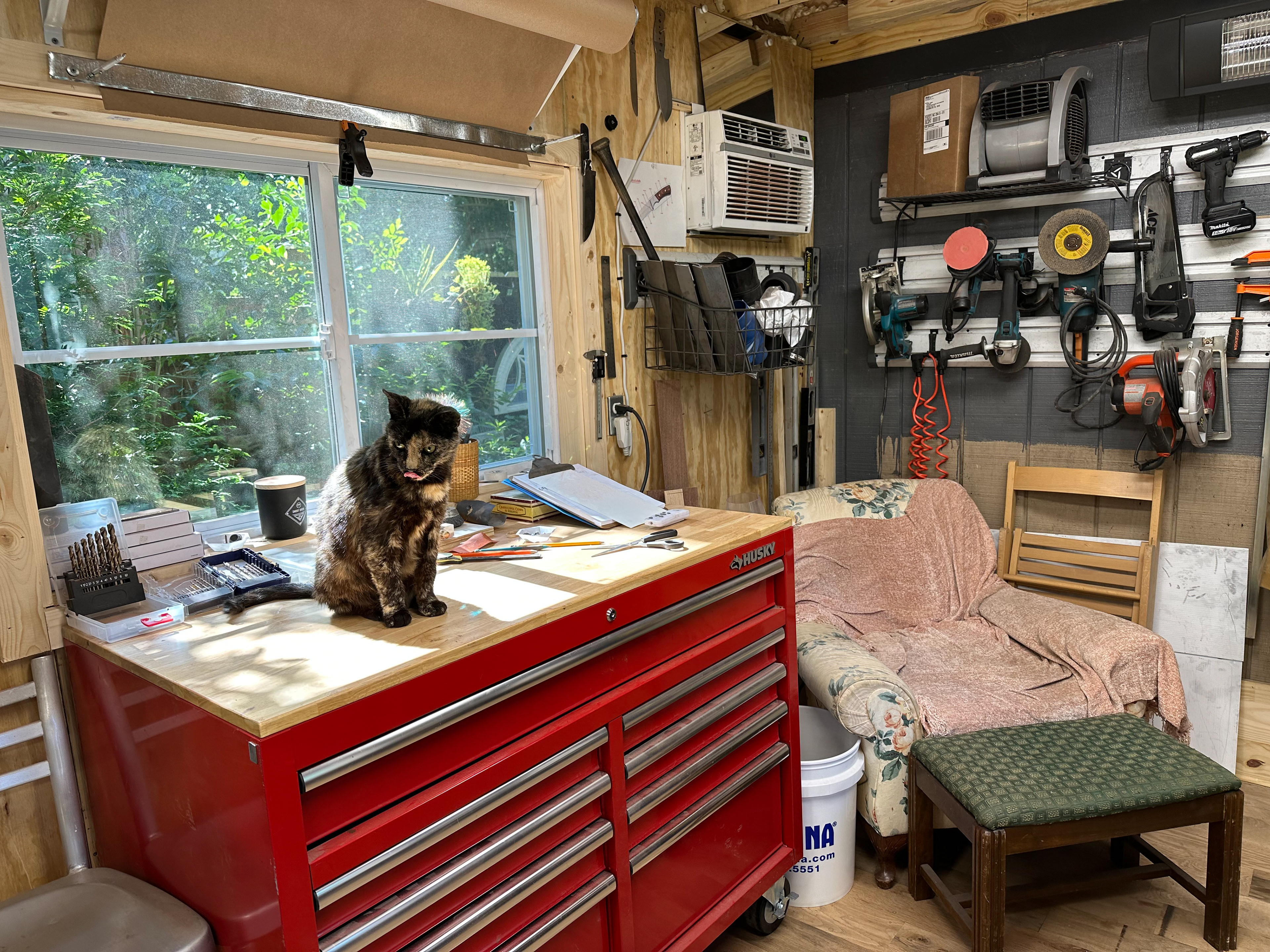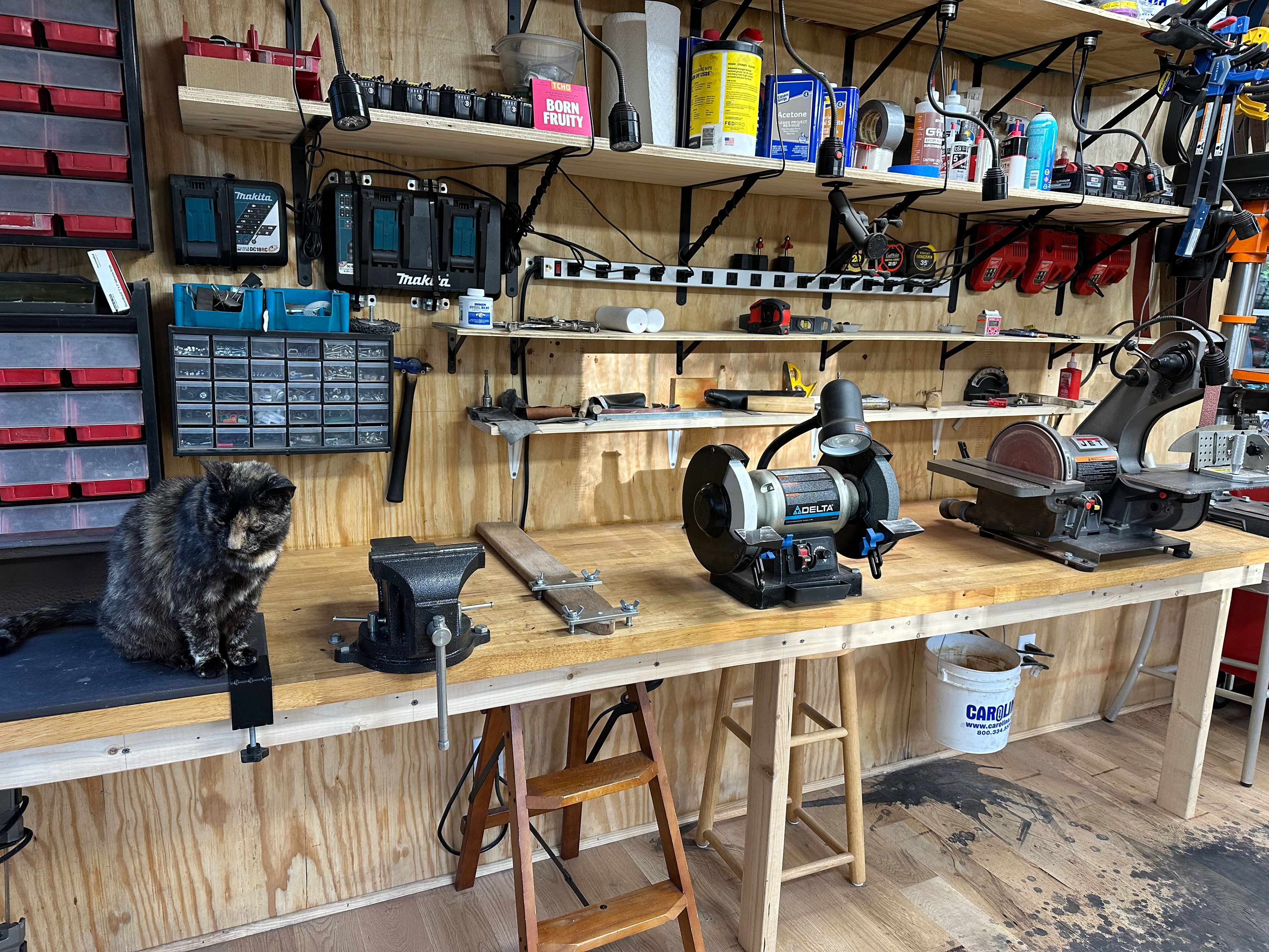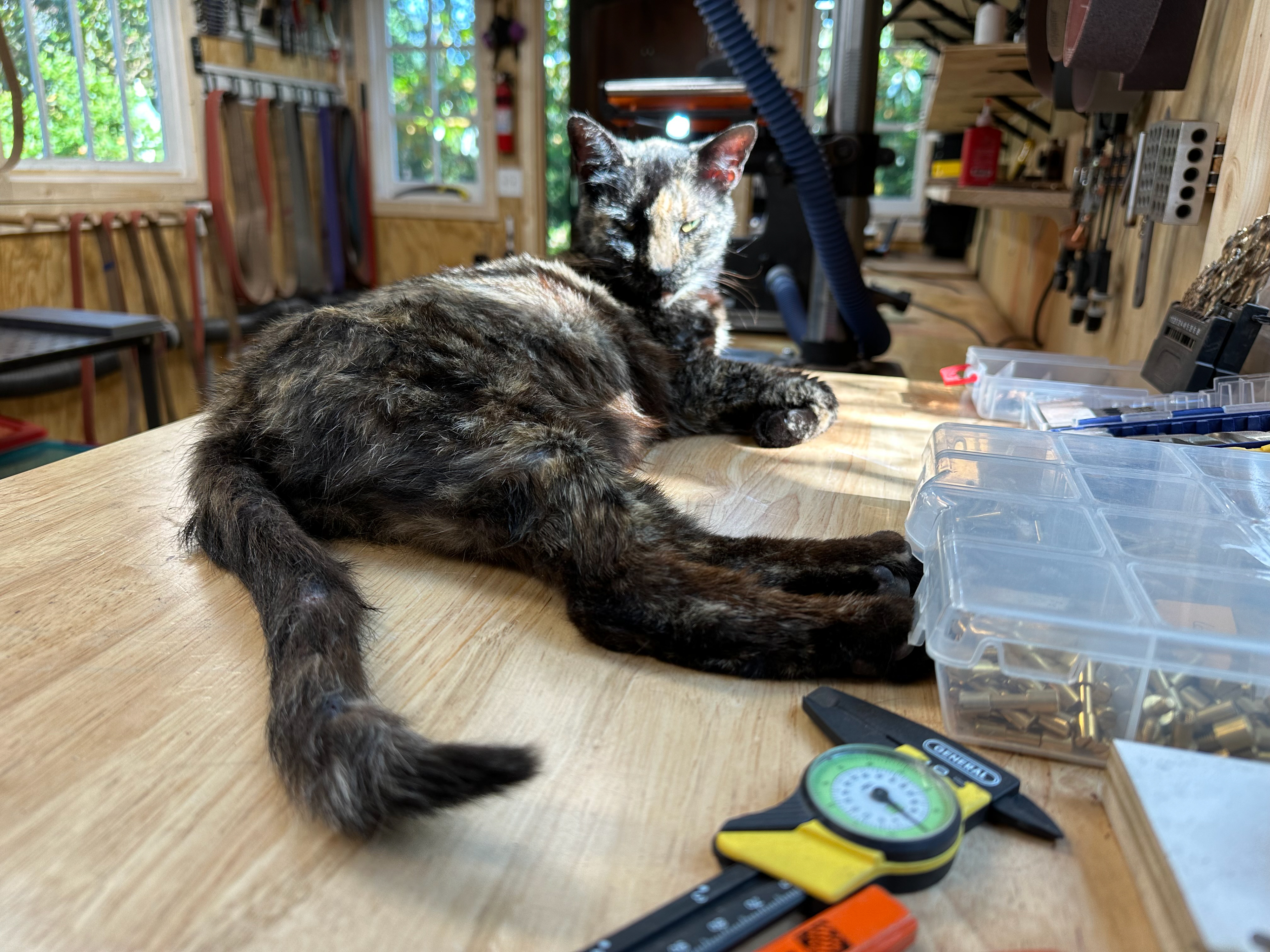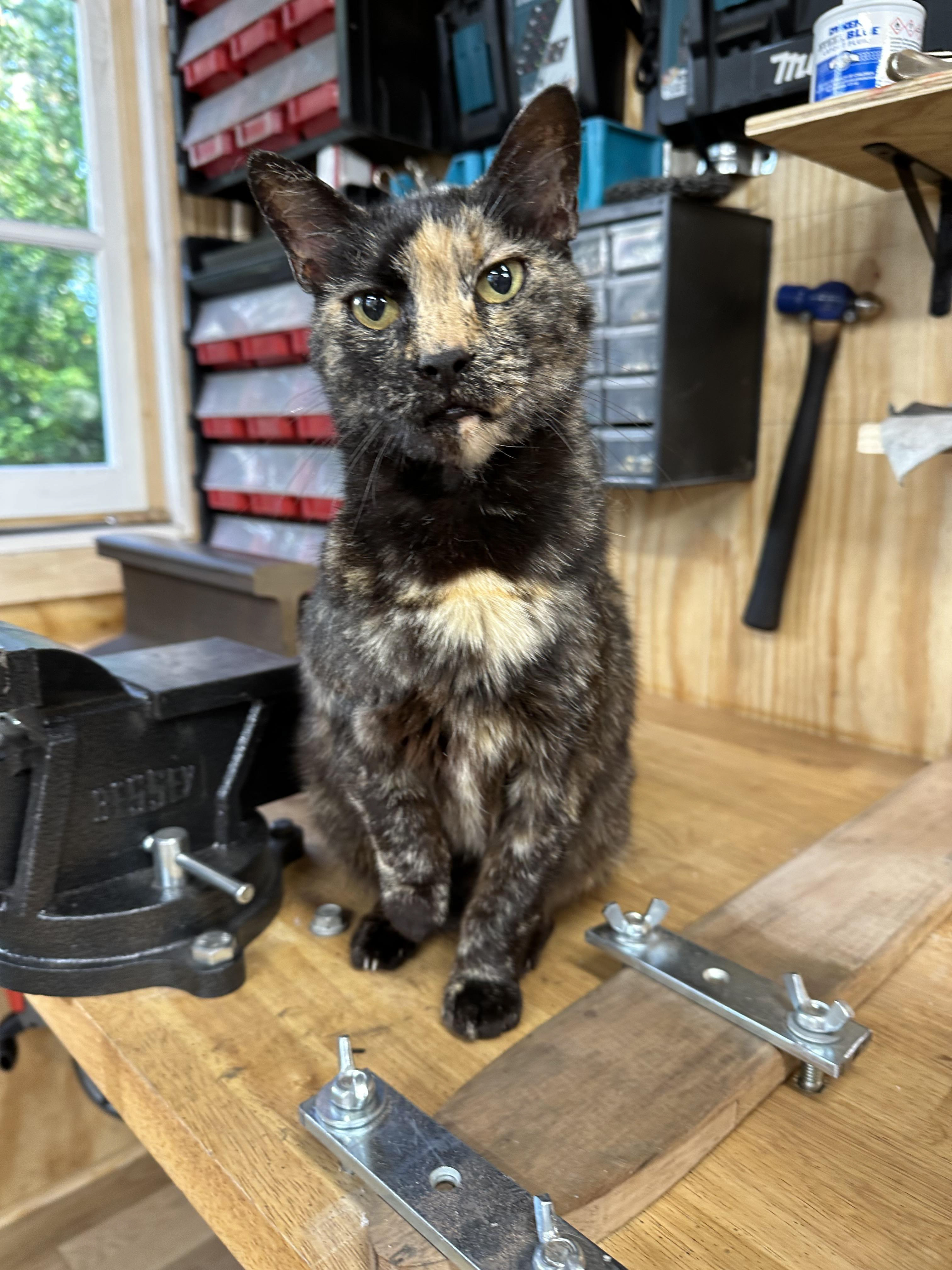 The shop cat that liked to help make knives.